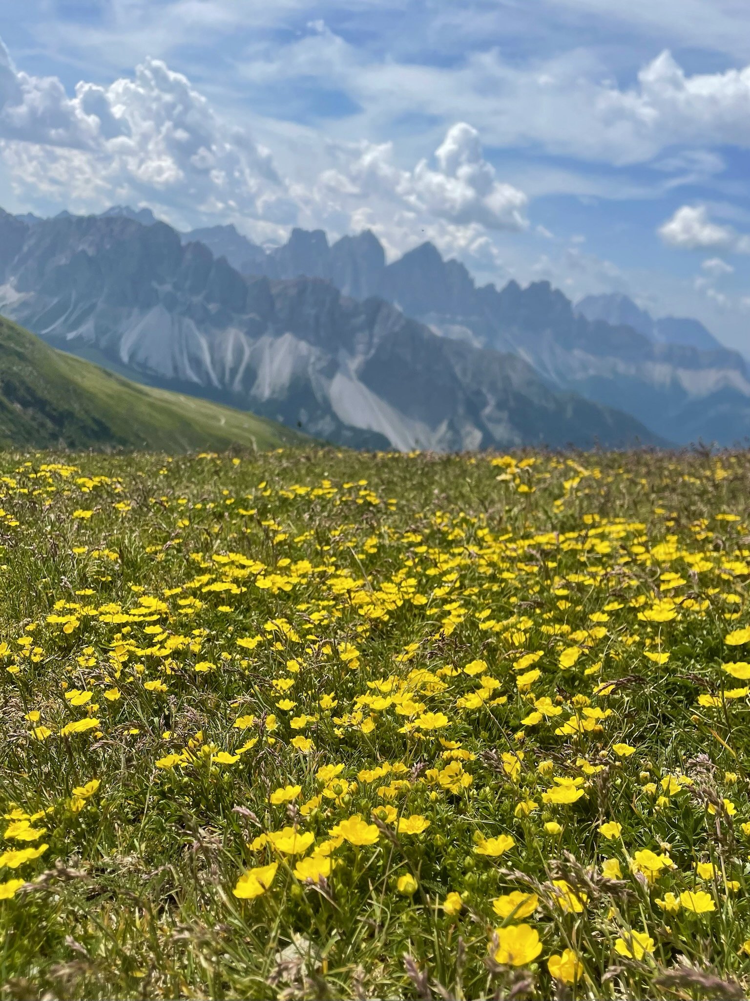 The Dolomiti play a clever game of contrast. One moment, you’re strapping on a helmet to hurl yourself downhill on a mountain cart, heart pounding and brakes squealing (no pedals on these puppies, just brakes). The next, you’re on an isolated trail, pausing to lean closer to a cluster of alpine daisies or milk white rock jasmine. After my art trip to the Pyrenees, I thought I’d gotten used to mountain blossoms—but here, every meadow felt like a living bouquet, the air sharp with pine and wild herbs.