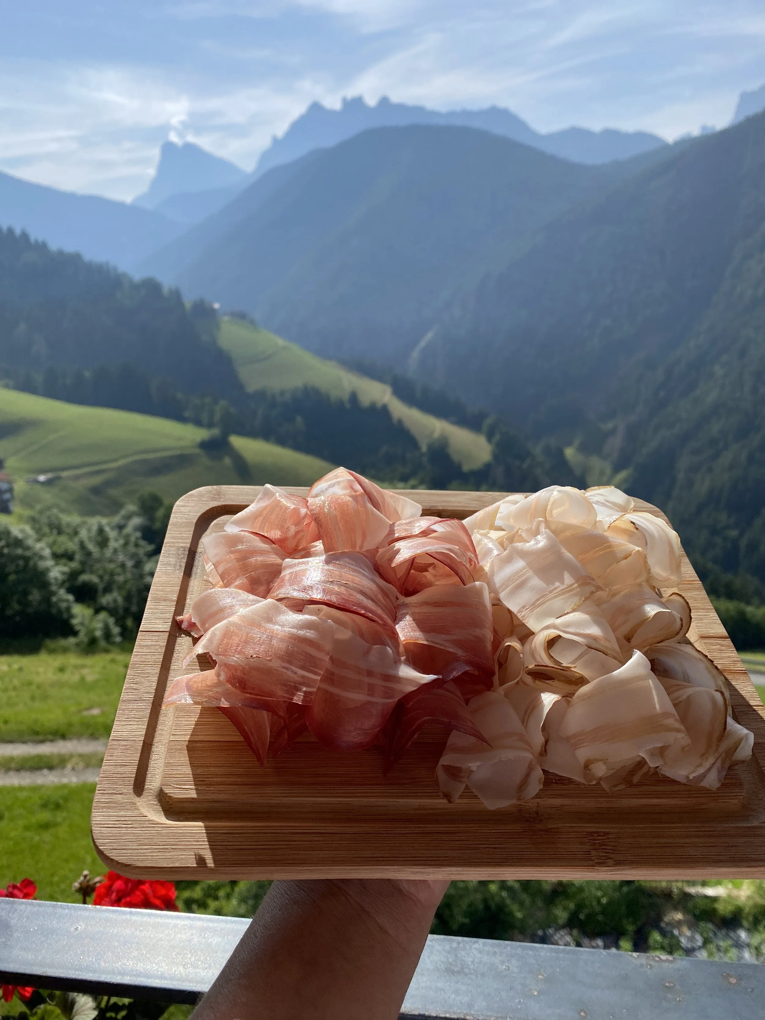If you have an option of a breakfast basket wherever you stay, I recommend it as an excellent introduction to the culinary delights of the region. Ours certainly primed us notice the particularities of Dolomiti foodways. Each day we found ourselves reaching for dishes we’d never expect in Italy: speck (think prosciutto, but smoked), mountain cheeses, pastries with red currants (or lingonberries or cranberries—we could never quite be sure), canederli (bread dumplings with cheese or speck, which I loved most in soup), sausages, ravioli stuffed with mountain greens, and of course, strudel.