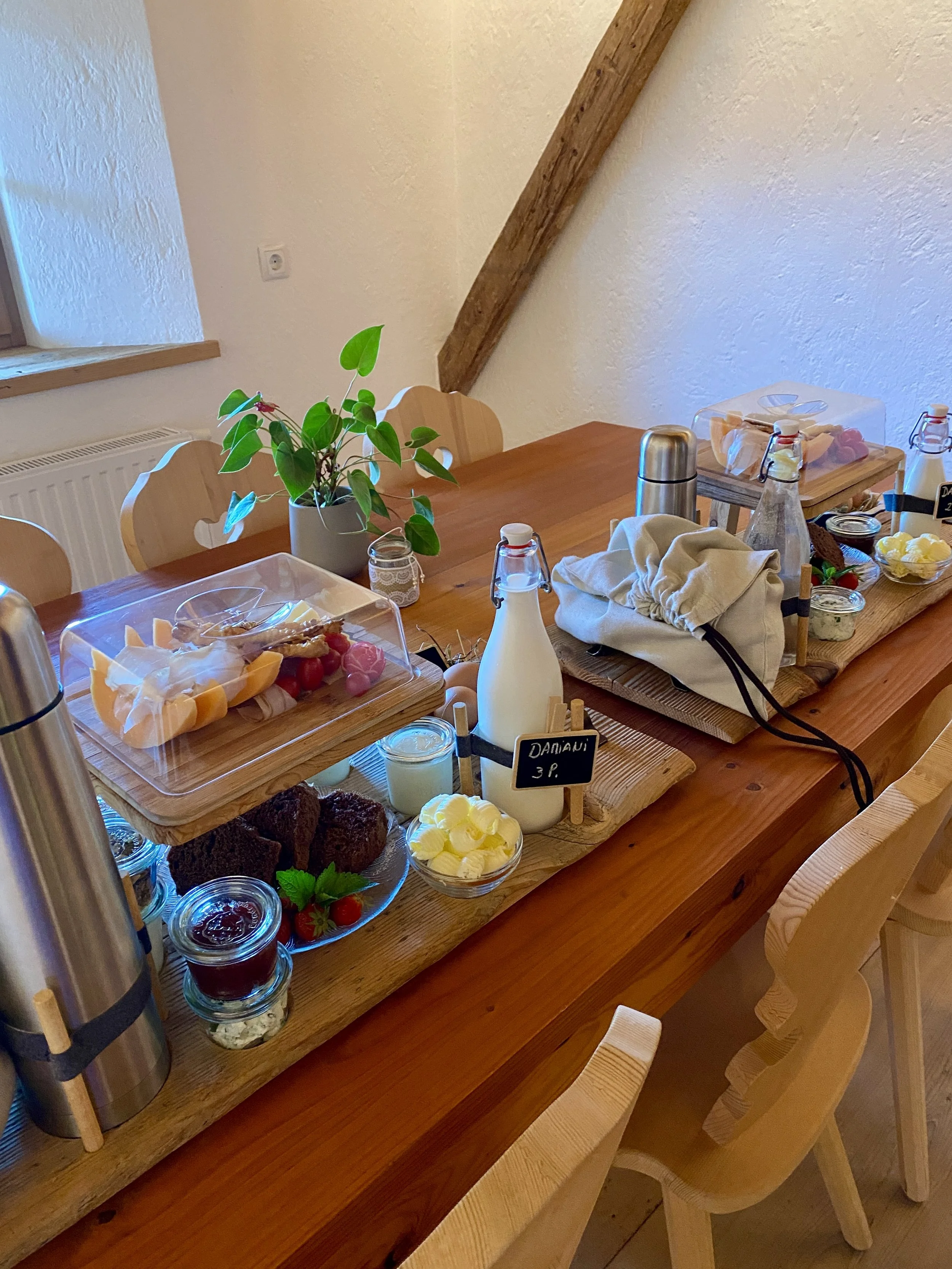 Our agriturismo became the heart of the trip. Imagine cowbells as lullabies, yogurt from morning milk, and jam from red currants. More on how to find your own agriturismo bliss in this post, but suffice to say: a highlight of our Dolomiti trip was living the farm-to-table dream. Especially that first morning when we requested the full breakfast basket and woke up this fantastical display of treats.